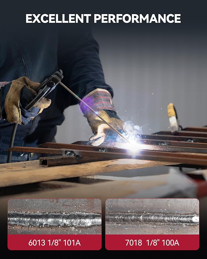 - 【EXCELLENT WELDS FOR WELDING RODS】The mini welder machine 110v is suitable for 6010, 6011, 6013, 7018 (maximum for 1/8" (3mm)), but 6013 and 7018 are most recommended for providing high - quality welding results and ensuring strong and smooth welds. This mini welding machine can weld various materials, such as cast iron, mild steel, stainless steel, and carbon steel.