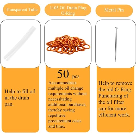 - 50PCS O-Rings: These O-rings are molded from high quality orange fluororubber material, Tested to meet OEM quality standards. 50 PCS are enough to change the oil several times for Harley Davidson, and it costs around $10 to purchase separately. A must have accessories for Harley.