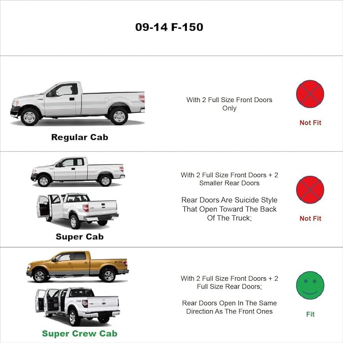 - Material Acrylic : Vehicle Service Type for 2009-2014 ford F150 Supercrew/Crew cab with 4 Full Size Doors for 2009-2014 ford F150 Supercrew/Crew cab with 4 Full Size Doors See more