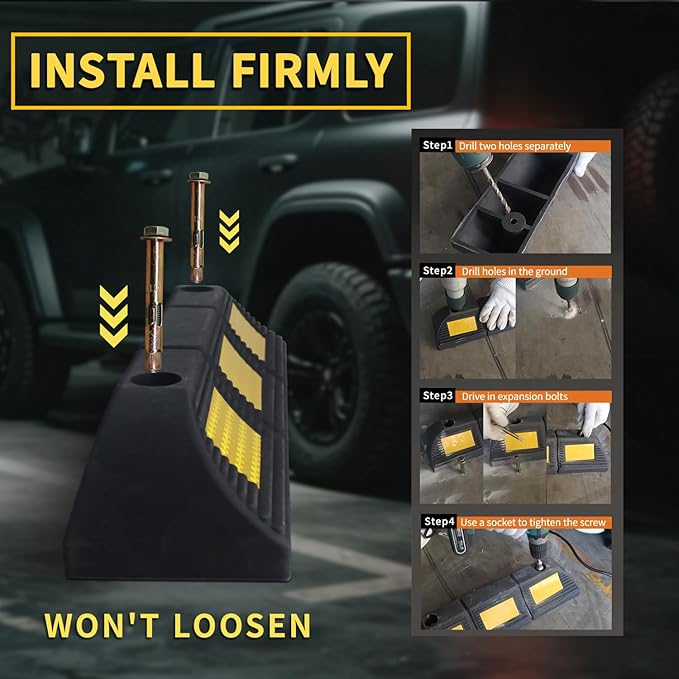 - 【33000 Lbs Load Capacity】 Height is 3.5'', it is enough for preventing car wheels from running over. It can be fixed to the ground using bolts.