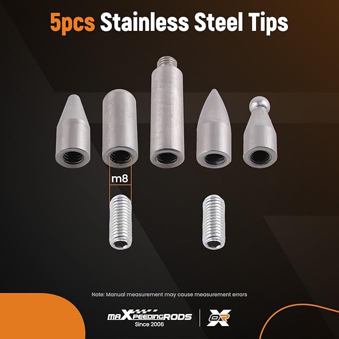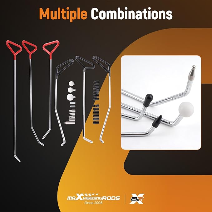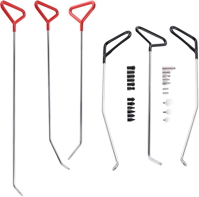 - 【Premium Material】 Dent removal rods are made from stainless steel, stable enough to push up the dent without bending or breaking. Corrosion-resistance surface keep bright finish all the time. The rubber handle design for a comfortable non-slip grip