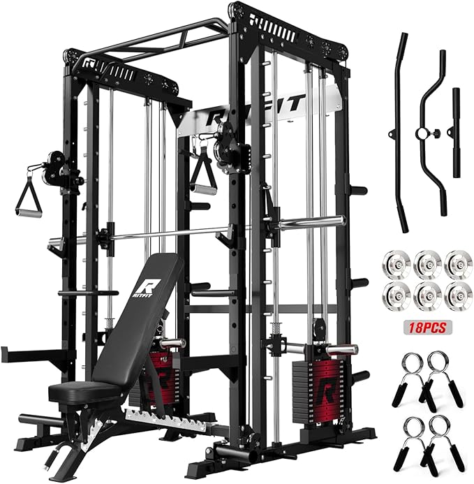RitFit M1 & M1 Pro Smith Machine with Cable Crossover System, Multi-Function Squat Rack Power Cage for Home Gym, Power Rack and Packages