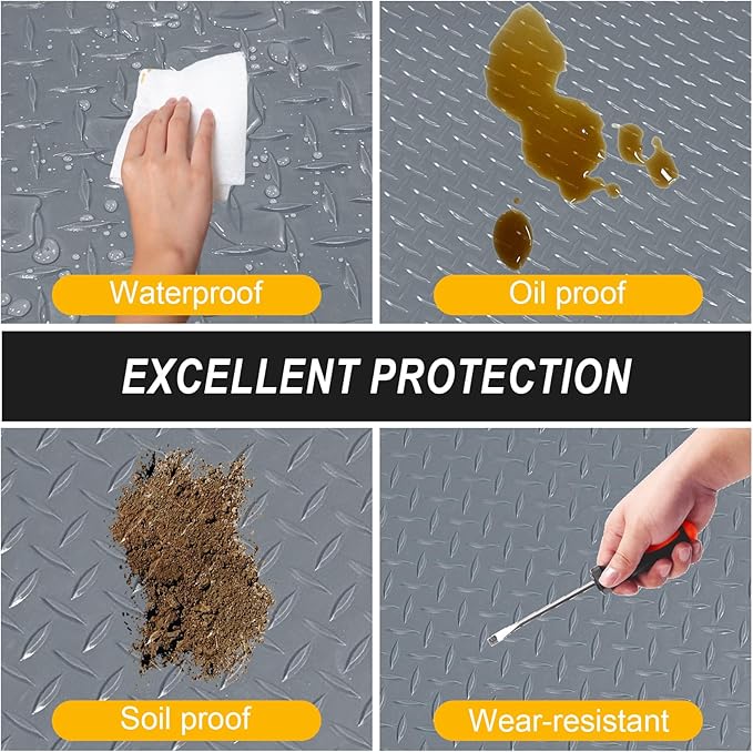 - Versatile for Any Space: Perfect for garages, workshops, gyms, and basements. Protects floors in homes, warehouses, and commercial spaces while enhancing aesthetics.