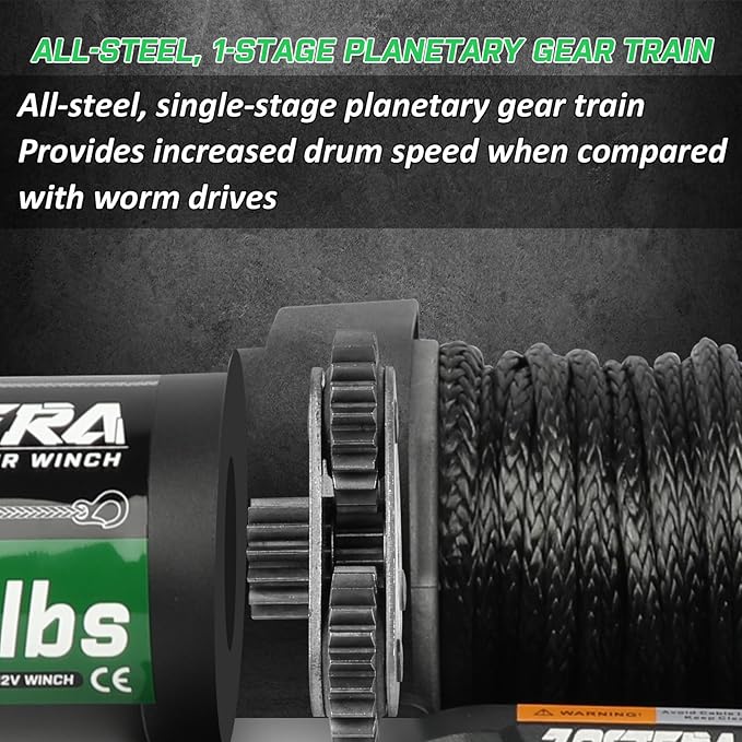 - 【3-Stage Planetary Gear】: This Zostera 2000 lbs ATV winch features planetary gear train and unique clutch brake system, the Gear Speed Ratio of 153: 1, ensures faster traction speed during load, and prevent slipping, ensuring efficient and safe use, brings you a better off-road experience.