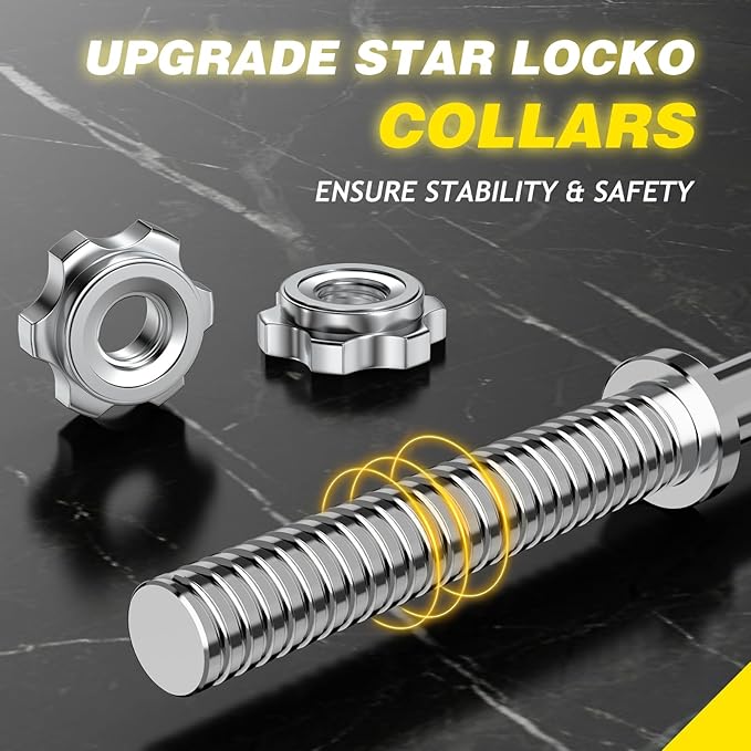 Weight Lifting Bar 57", 1" Standard Straight Barbell Bars Olympic for Home Gym Weight lifting/Strength Training/Squat/Bench Press/Deadlift/Lunges/Hip Thrusts, 2 Star Collars (480lb Weight Capacity)