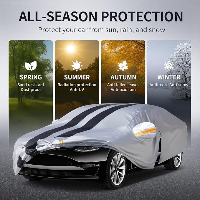 - 【All-Weather Protection】 The car cover offers excellent heat insulation during summer and is waterproofed at the seams, providing protection against rain, UV rays, wind, and dust throughout the year.