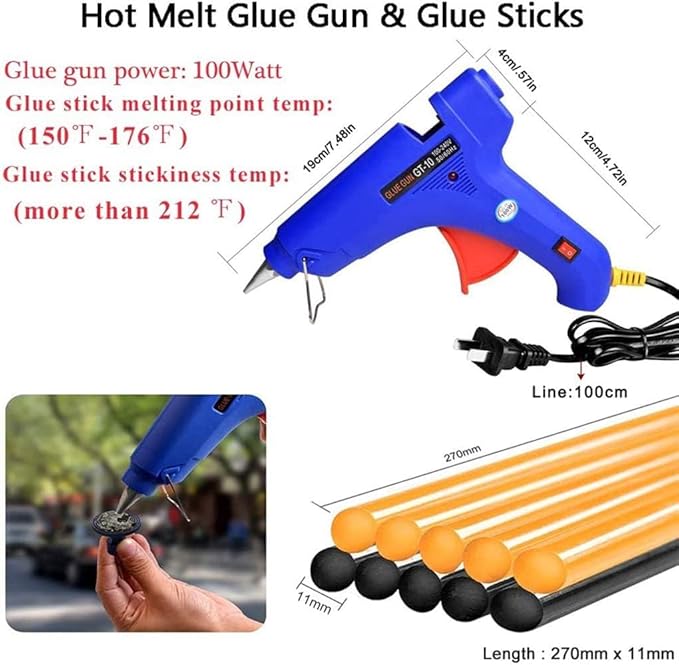 - SAFE& : GREAT SERVICE: Dent pullers tabs won't damage at the vehicle original paint. (100W) glue gun built-in fuse and makes it safer. All material without chemicals or toxic material. If any quality-related issues with the item, please contact our Amazon prime customer service and we'll offer you a replacement or a refund.