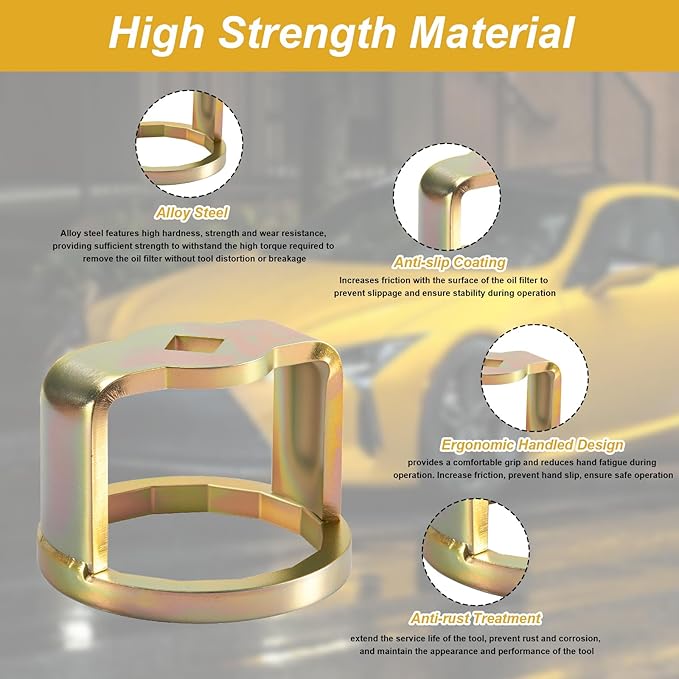 - High Strength Material: Alloy steel features high hardness, strength and wear resistance, providing sufficient strength to withstand the high torque required to remove the oil filter without tool distortion or breakage