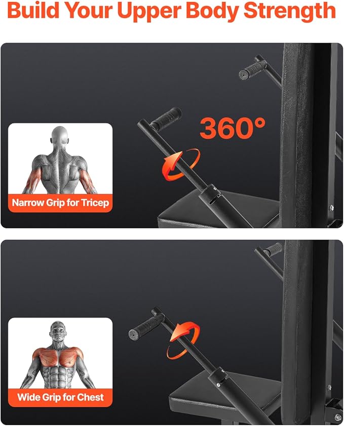 - Ultra-Strong Weight Capacity: Our tricep dip press machine was made with 2x2 inch carbon steel tubing, 1.5mm thick, fully welded. The seat has a 450 lbs weight capacity, with a strong and sturdy structure that ensures better stability and support, ensuring safety and stability
