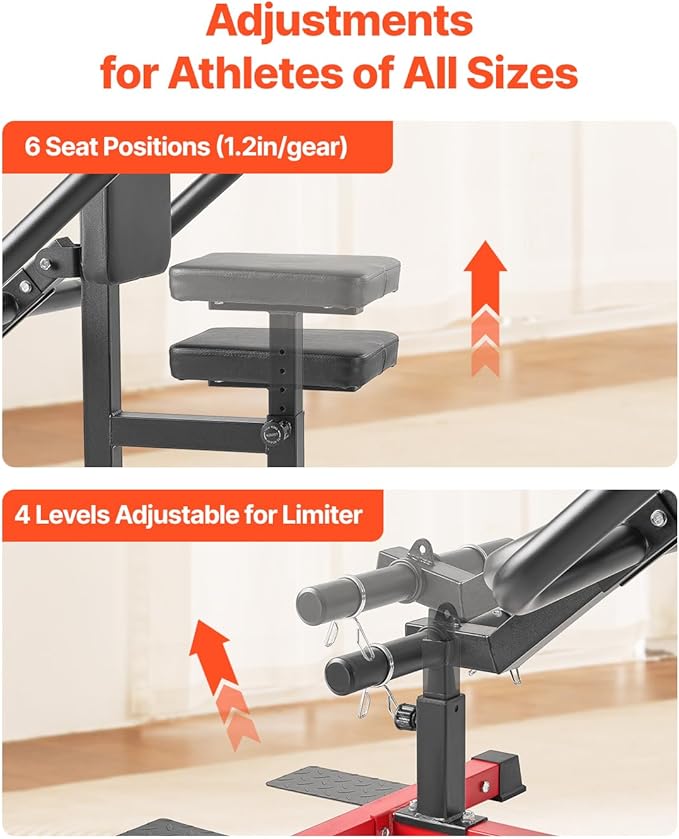 - Personalized Adjustments: The seat offers 6 adjustable positions (30mm per adjustment), suitable for different body types. The seat height can be adjusted from 40 to 56 cm, providing full flexibility to enhance and target specific muscle groups