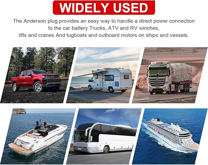 - Good Quality:50A plug connectors are made of high quality PC flame retardant material with excellent heat, durability and corrosion resistance. The terminals are made of silver-plated copper for excellent and stable conductivity. This ensures the durability of Anderson connector kits in harsh environments.