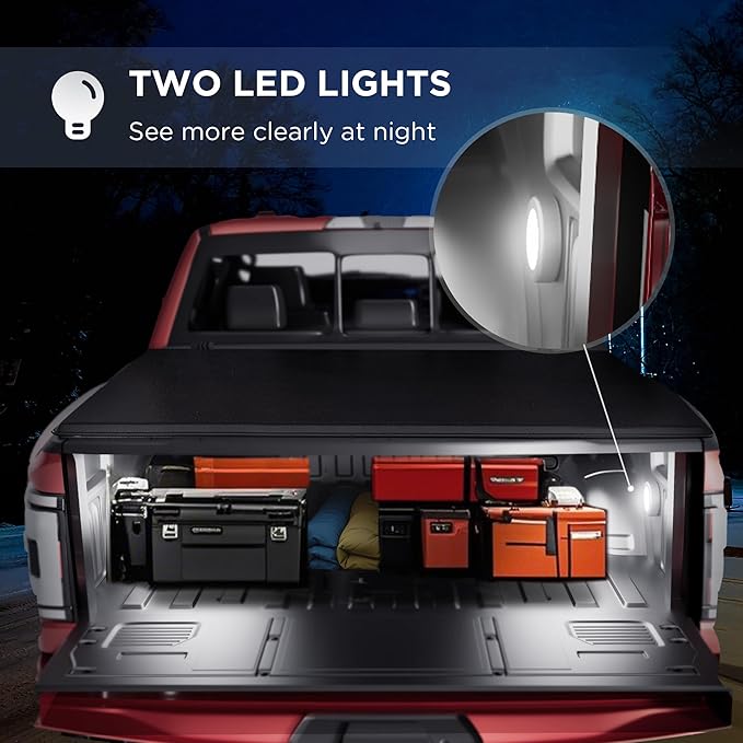 - 【2 LED Lights】The tonneau cover of the pickup truck is equipped with 2 LED lights, designed specifically for night use. Significantly improve nighttime clarity and safety.