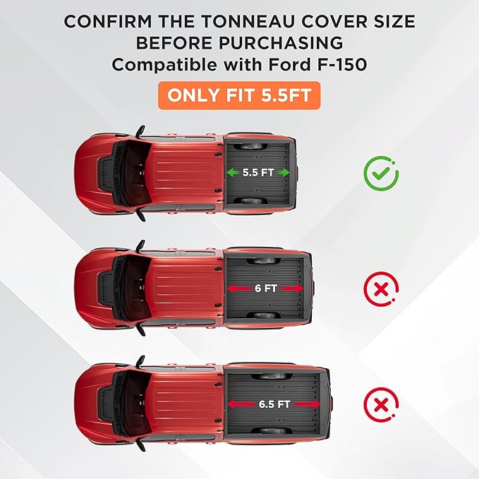 - 【Fitment】Suitable for 2015 - 2025 Ford F150 5'5"Bed (66"), please measure your lathe size and confirm the car model before ordering.