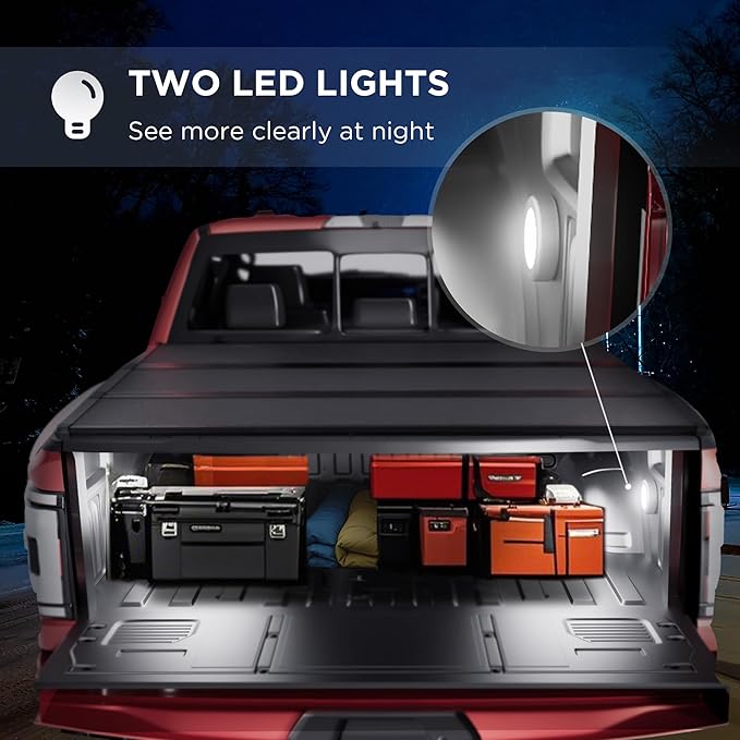 - 【2 LED Lights】The tonneau cover of the pickup truck is equipped with 2 LED lights, designed specifically for night use. Significantly improve nighttime clarity and safety.