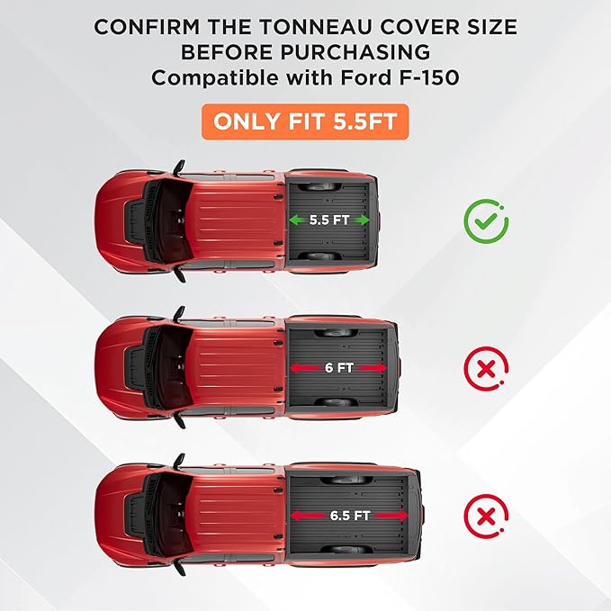 - 【Fitment】Suitable for 2015 - 2025 Ford F150 5'5"Bed (66"), please measure your lathe size and confirm the car model before ordering.