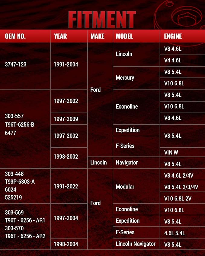 - WIDE APPLICATIONS: This camshaft alignment tool set is compatible with most Ford 4.6L, 5.4L, 6.8L 2-valve and 4-valve engines since 1991; For example: Compatible with Ford 1997 - 2002 4.6L Windsor V8 Econoline and F-Series Truck;1997 - 2002 5.4L V8 Econoline Expedition and F-Series Truck; 1997 - 2002 6.8L V10 Econoline and 1998 - 2002 5.4L V8 Lincoln Navigator-r etc