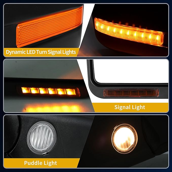 - Functions: featuring turn signal light & puddle light & heated plane mirror & manual folding, the multifunctional side mirrors can strikingly enhance your driving experience