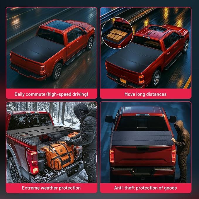 - SMART DESIGN: Durable safety straps and buckles secure the cover in the 2/3 open position, tonneau cover suitable for daily commuting (such as highway driving), long-distance moving, rain protection needs and cargo anti-theft protection