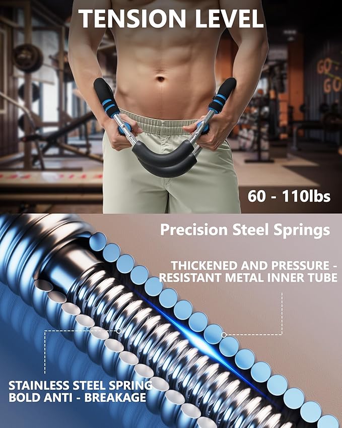 - 【Upgraded 60-110lbs Adjustable Resistance】Heavy-duty steel springs deliver smooth 60-110lbs resistance with zero jerking, protecting joints from impact. Adjust width & tension via tool-free quick-lock mechanism – perfect for beginners to athletes.
