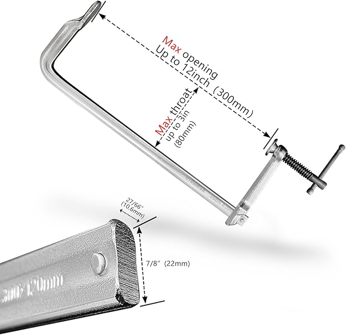 - With a 12-inch maximum opening and 3 inch throat depth, this clamp easily handles most welding tasks, providing the stability and reach needed for professional results.