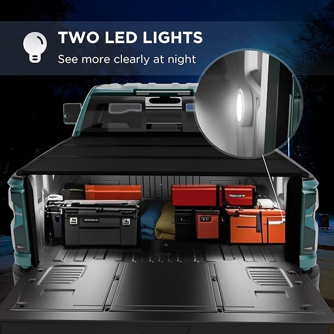 - 【2 LED Lights】The tonneau cover of the pickup truck is equipped with 2 LED lights, designed specifically for night use. Significantly improve nighttime clarity and safety.