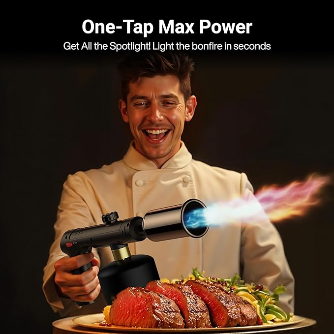 - Versatile Firepower: Ignite charcoal and campfires fast, grill meats to perfection, add pro finishes to BBQ, sous vide searing and to DIY woodworking projects. Perfect flame thrower gun for outdoor cooking or indoor use