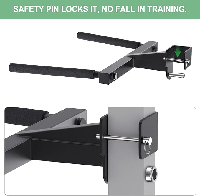 - 【Quick & Easy Installation】Slide the Y-Dip Bar into the power cage and secure it with the included safety pin. Adjustable height and position offer a customized and comfortable workout experience.