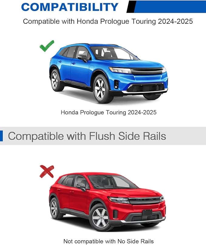 - 【Compatibility】Compatible with Honda Prologue Touring 2024 2025 2026 with Flush side rails.Please check your vehicle's Year, Make and Model before purchase.