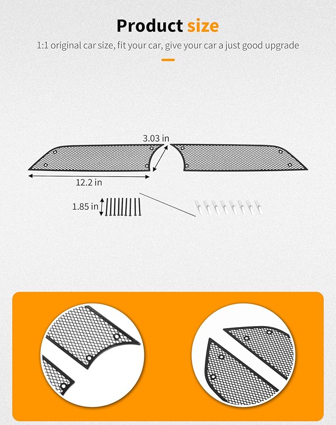 - Easy Installation--This mesh grille insert is easy to install securely in seconds with screws, it will do no harm to your car and can easy to attach.
