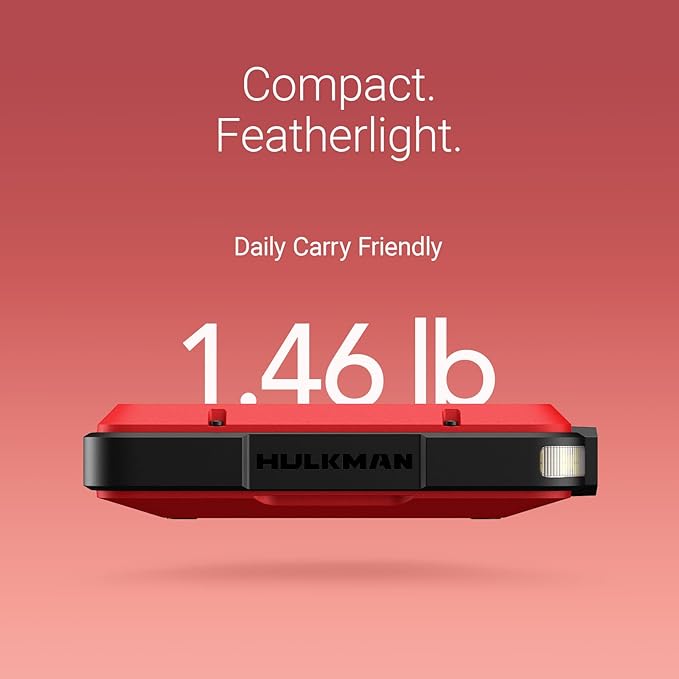 Hulkman Alpha,Ultra Red,1000A 37Wh Jump Starter, Lightweight, Stylish,12V Jump Box with Jumper Cables,45-Min Full Recharge,24-Month Standby,3-Step Easy Start,IP65,LED Display,for 6.5L Gas/3.0L Diesel
