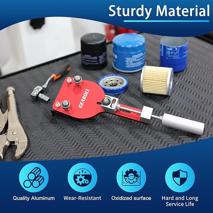 - Premium Material: The main body of the oil filter opener is made of anodized aluminum alloy billet, with positioning rollers, and the cutting range adjustment lead screw is made of stainless steel and equipped with a high quality steel made vise jaw plate