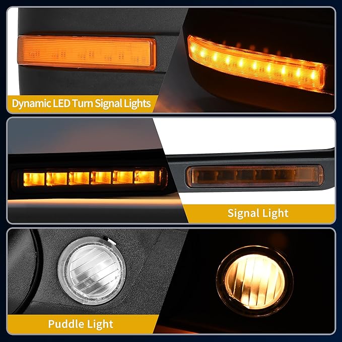 - Functions: featuring power rear turn signal light & puddle light manual folding, adjustable & power heated plane mirror,the multifunctional side mirrors can strikingly enhance your driving experience