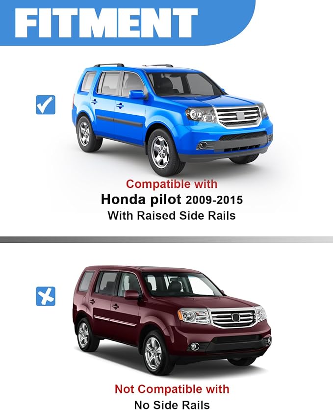 - 【Compatibility】Compatible with Honda pilot 2009 2010 2011 2012 2013 2014 2015 with Raised Side Rails.Please make sure it fits your vehicle before purchasing.
