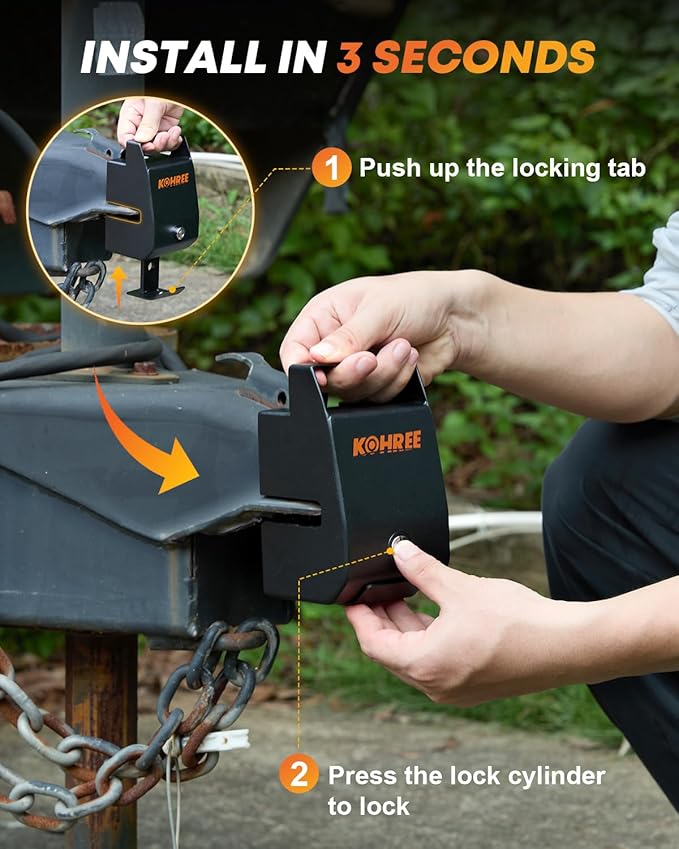- Compatibility: The Kohree trailer hitch lock fits 2 5/16", 2" couplers. Not compatible with irregular, square, and adjustable couplers. ##Please verify the compatible coupler sizes to ensure the lock you choose fits your trailer coupler correctly##
