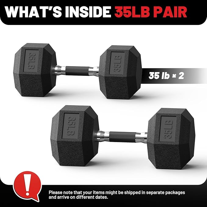 PAPABABE HEX Dumbbell Set 2.5-125lb, Rubber Encased Home Gym Dumbbells, Exercise & Fitness Weights Dumbbells for Women & Men, Hand Weight for Strength Training