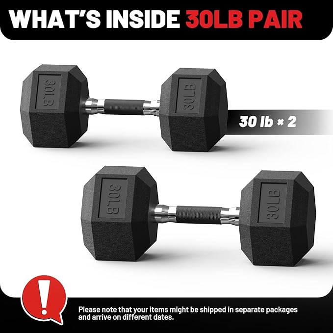 PAPABABE HEX Dumbbell Set 2.5-125lb, Rubber Encased Home Gym Dumbbells, Exercise & Fitness Weights Dumbbells for Women & Men, Hand Weight for Strength Training