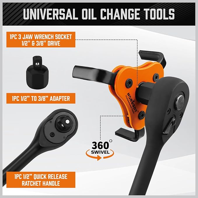 - 180° SWIVEL & UNIVERSAL SOCKET : Swivel head design allows smooth rotation in tight engine bays. The 3-jaw universal oil filter wrench socket works with 3/8" & 1/2" drive ratchets, making stubborn filter removal quick and effortless