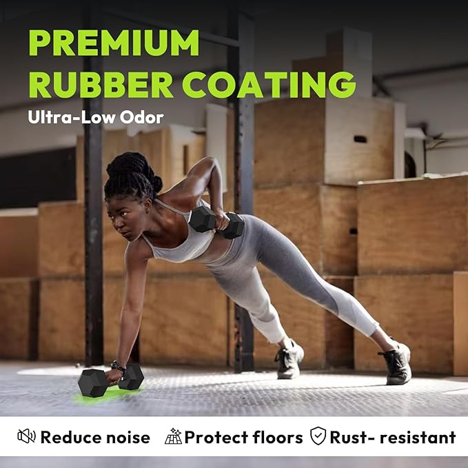 - Hexagonal Design for Stability & Practical Storage: The unique hexagonal shape prevents the dumbbells from rolling, providing a stable base during workouts. This design also makes storage easy and convenient, adding practicality to your fitness routine.