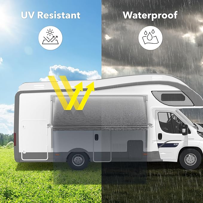 - WEATHER RESISTANT: Our water-resistant material effectively repels water, keeping your awning and the area beneath it dry during rainstorms and wet weather.