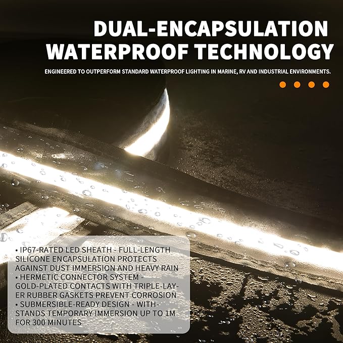 - Low Power, High Performance (12V/1.5A, 18W):Engineered for energy efficiency, this 12V strip draws only 1.5A (18W)—providing all-night illumination without draining your battery.