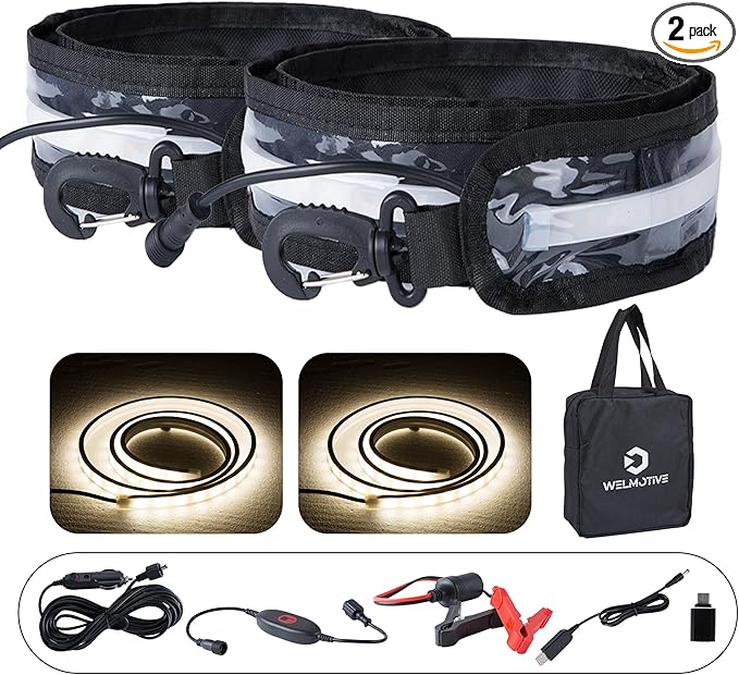 - Dual Power Options (5M Car Cable + Alligator Clips):Comes with a 5M cigarette lighter cable for vehicle use and alligator clips for direct battery hookup—plus a touch-sensitive switch for effortless control.