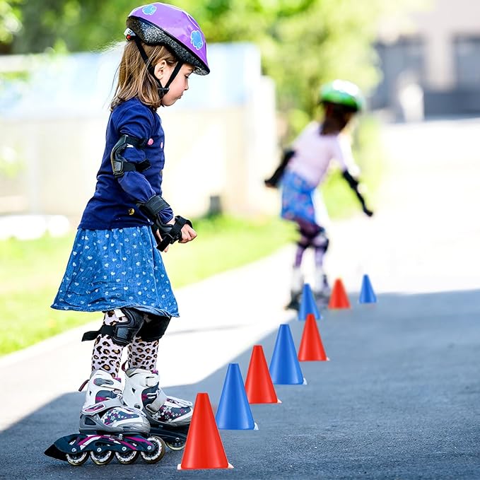 - Training Cones Bulk: you will receive 48 pieces of cones for soccer practice, available in 2 colors, red, blue, Each one measures about 9 inch/ 23 cm high, 5 inch /13 cm in diameter at the bottom and 1 inch in diameter at the top; Enough quantity, various colors and compact size can meet your different use demands