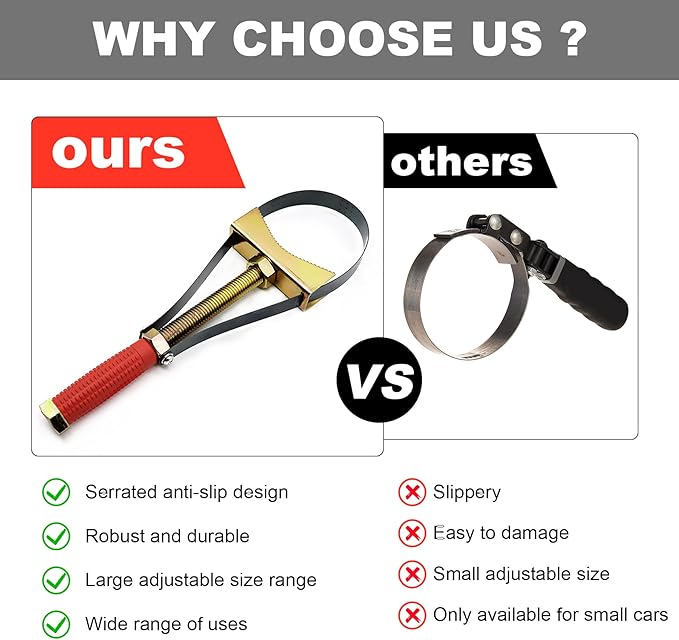 - 【Easier Oil Changes】Use the tension adjustment nut to adjust the rotation pressure, say goodbye to the soft filter wrench, say goodbye to the troubles caused by stubborn oil filters, make oil changes a breeze, and save more time and energy.