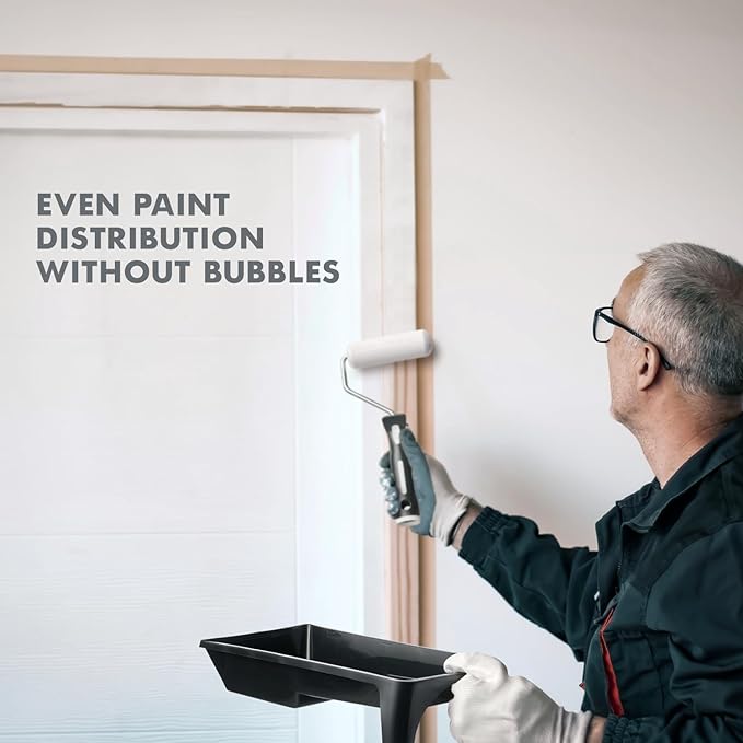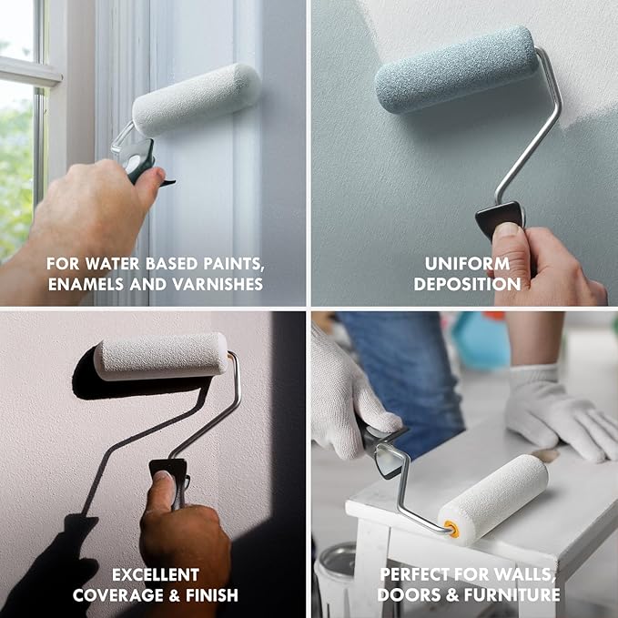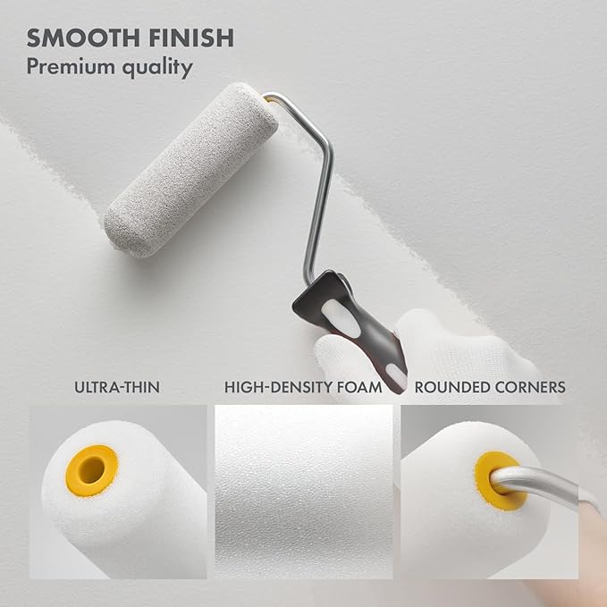 - Superior High-Density Foam: Our foam paint rollers for walls are made with extra-thin, high-density foam, ensuring even paint distribution with no bubbles, streaks, or imperfections. Ideal for water and oil-based paints, glosses, stains, and varnishes. Achieve a professional look every time!