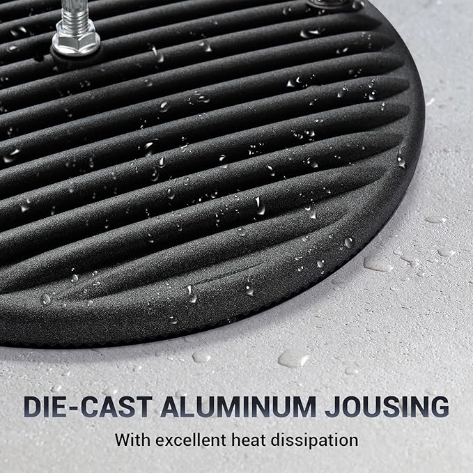 - 【Durable/Long Service Time】This UFO LED high bay light adopted high quality non-flickering driver ensure it over 50,000hours lifespan. It comes with an die-casting aluminum shell which features great thermal conductivity, these make the light durable and excellent heat dissipation. for workshops, barn, gymnasiums, factories, exhibition halls, shopping malls, supermarkets, storage yards, basements and any other large commercial and industrial places.