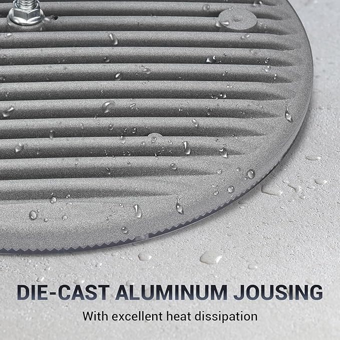 - 【Durable/Long Service Time】This UFO LED high bay light adopted high quality non-flickering driver ensure it over 50,000hours lifespan. It comes with an die-casting aluminum shell which features great thermal conductivity, these make the light durable and excellent heat dissipation. for workshops, barn, gymnasiums, factories, exhibition halls, shopping malls, supermarkets, storage yards, basements and any other large commercial and industrial places