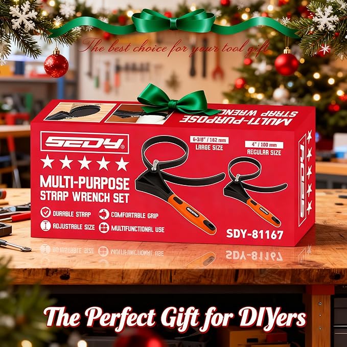 - HIGH PERFORMANCE - Designed with a reinforced rubber strap and screw buckle connection, this 2-piece wrench set offers exceptional grip and torque for various tasks like oil filter removal, plumbing, and drain work.