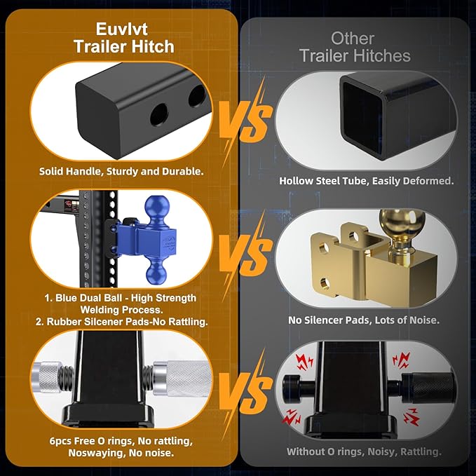 - 【3 Upgraded ANTI-RATTLE Measures】- No More Hassle or Noise When Towing! Our Adjustable Tow Hitch Comes with ① 3x Silencer Pads and ② 6x O-rings to Reduce the Sound Between Shank and The Receiver ③ 2x Rubber Washers in Between The Shank and The Receiver Removable Parts of The Ball Mounts. All These Help Cut Down Any of The Noise The Trailer May Have, Vibration-free and Quiet Towing Experience, Perfect for Scenic Rides, Off-roading, and Long-distance Hauling.
