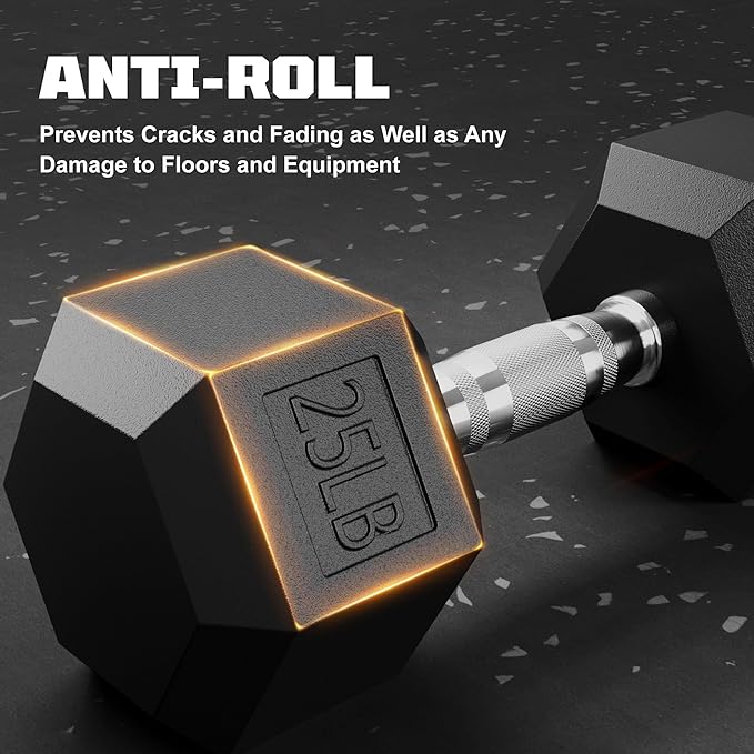 - 【Durable Cast-Iron Construction】:Engineered with heavy-duty solid cast-iron cores and a sleek black powder coating, these hex dumbbells resist chipping, rust, and odor. Designed for longevity, they withstand intense workouts while maintaining a polished look for years.