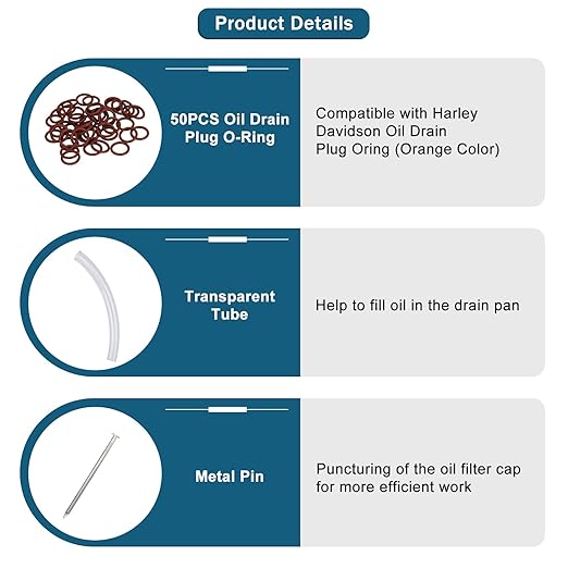 Oil Change Kit Fit for Harley, Oil Filter Cap Wrench, Crankcase Fill Funnel, Drip Free Oil Filter, Primary Case Oil Funnel, 50PCS Drain Plug O-Ring, Motorcycle Accessories Tool Fit for Harley Davidson